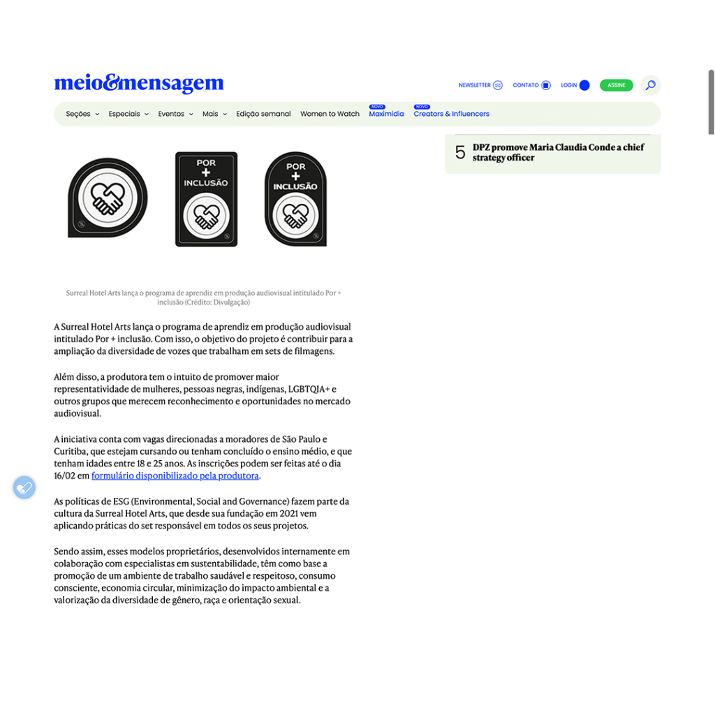 Mais do que uma iniciativa da Surreal, o Set Responsável é um compromisso integrado a todas as etapas de nossas produções. Atuamos com gestão e destinação correta de resíduos, compensação de CO₂ e estratégias de inclusão, promovendo ambientes de trabalho mais saudáveis, diversos e com menor impacto ambiental. Valorizamos o respeito às identidades de gênero, raça e orientação sexual, porque histórias só fazem sentido quando todos se sentem parte delas. Um compromisso reconhecido desde 2023 com o Selo de Direitos Humanos e Diversidade da cidade de São Paulo.